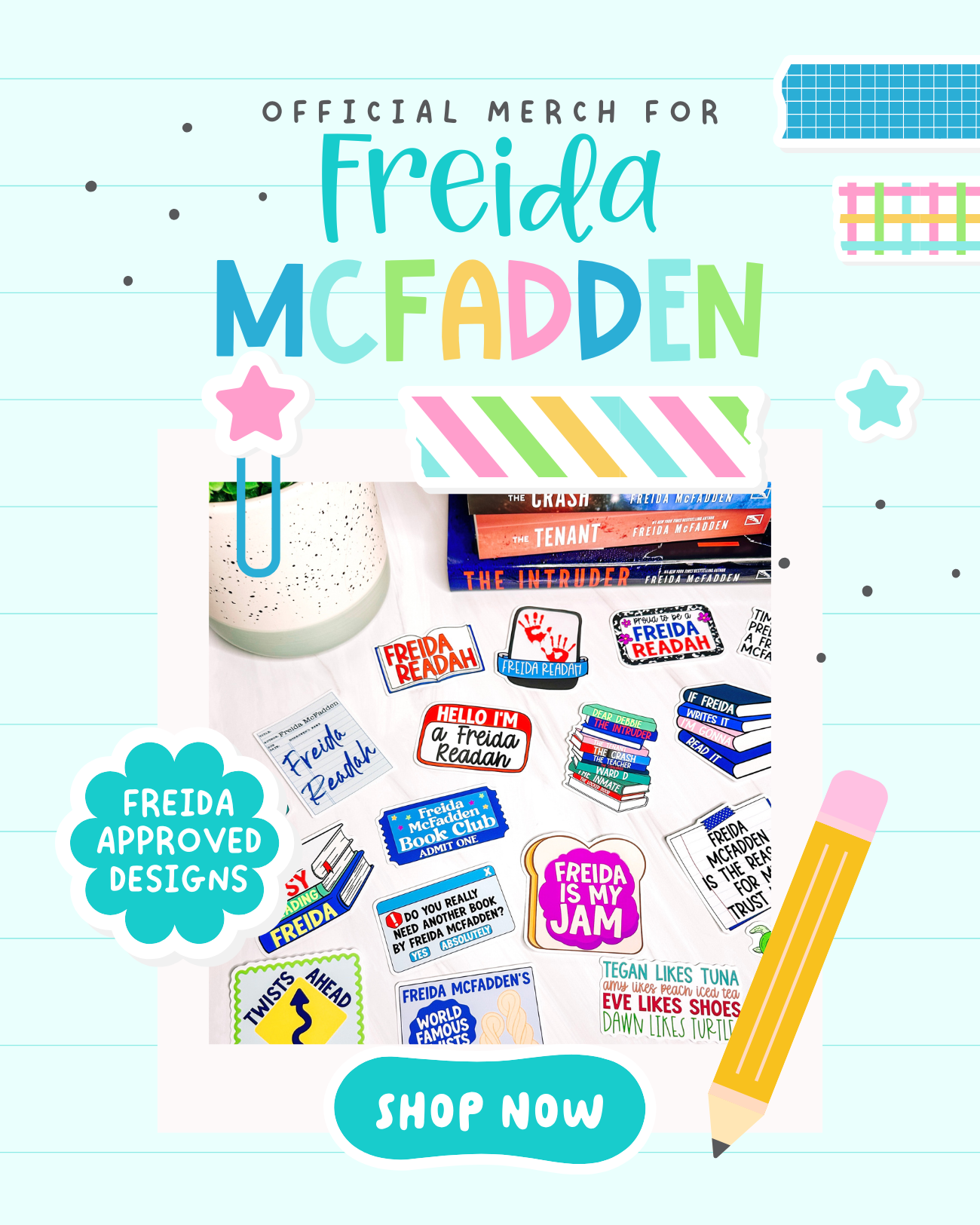 Ultimate Freida McFadden 25 Piece Vinyl Sticker Bundle - Official Merchandise of Freida McFadden