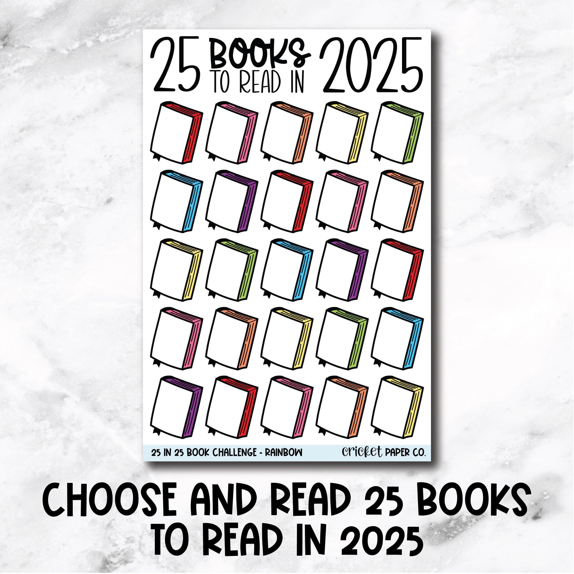 25 Books to Read in 2025 Book Journal Stickers - Rainbow