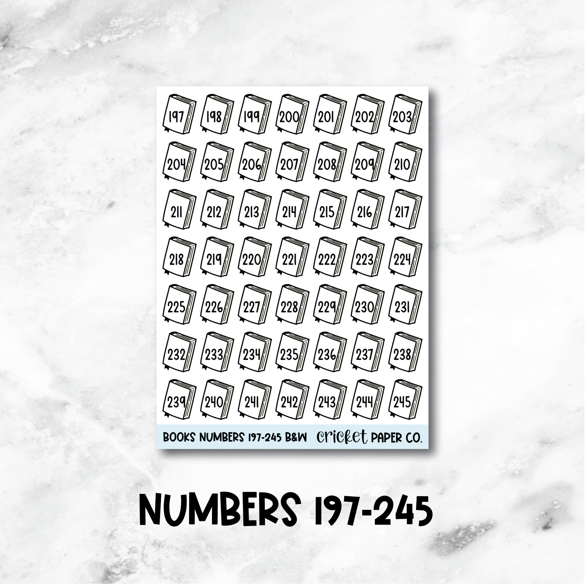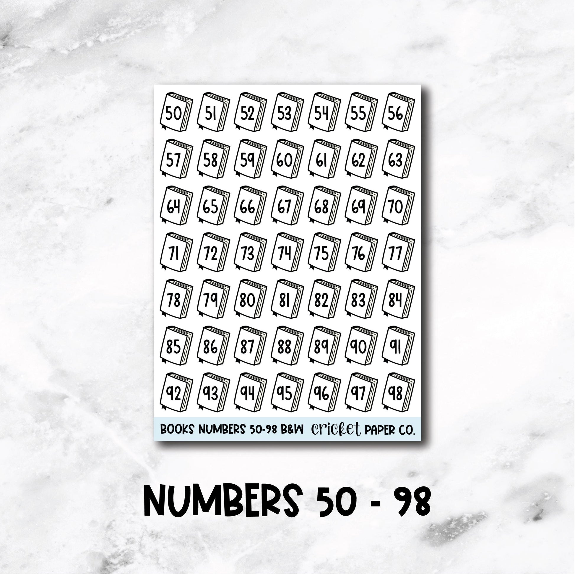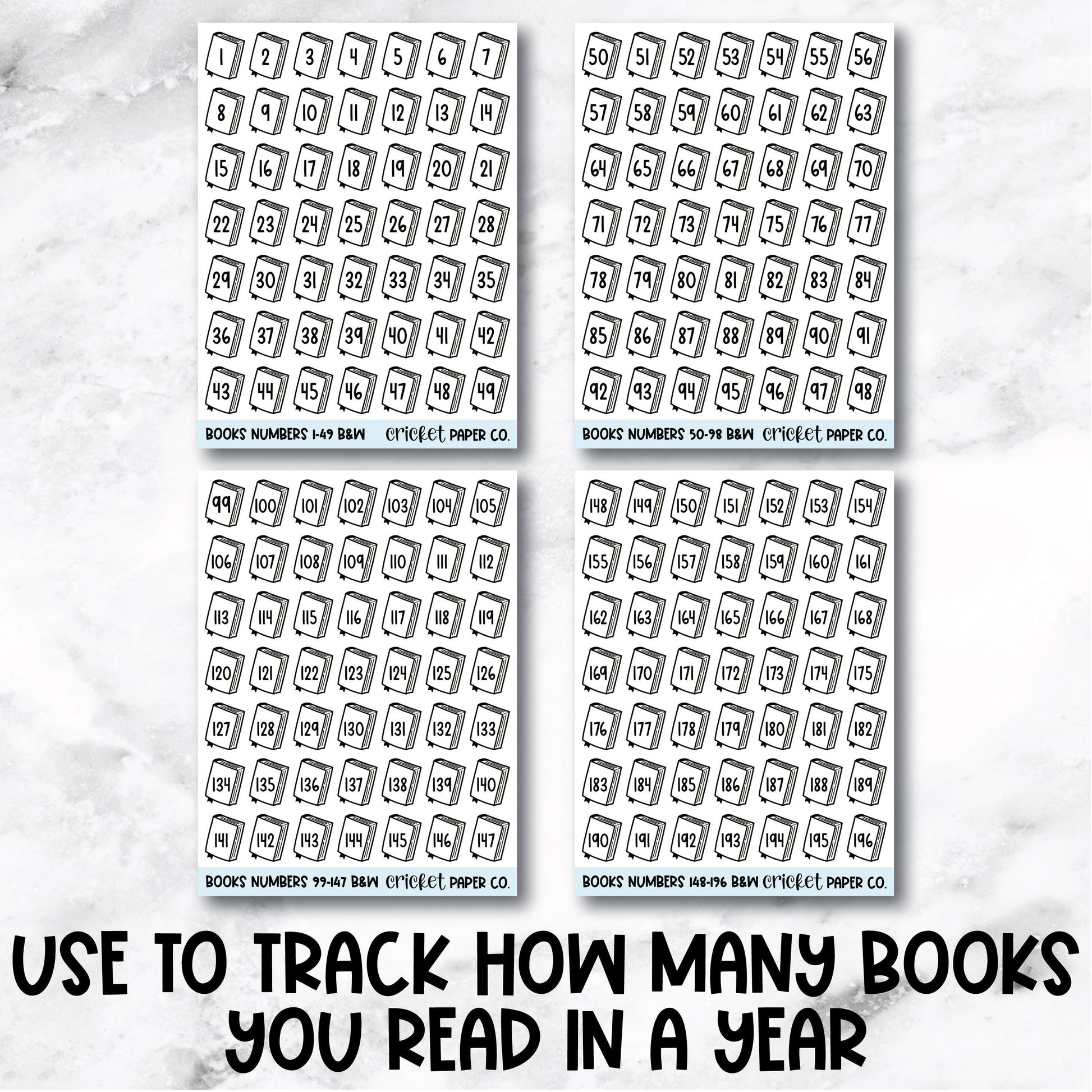 Book Numbers Reading Tracker Book Journal Stickers - Black & White