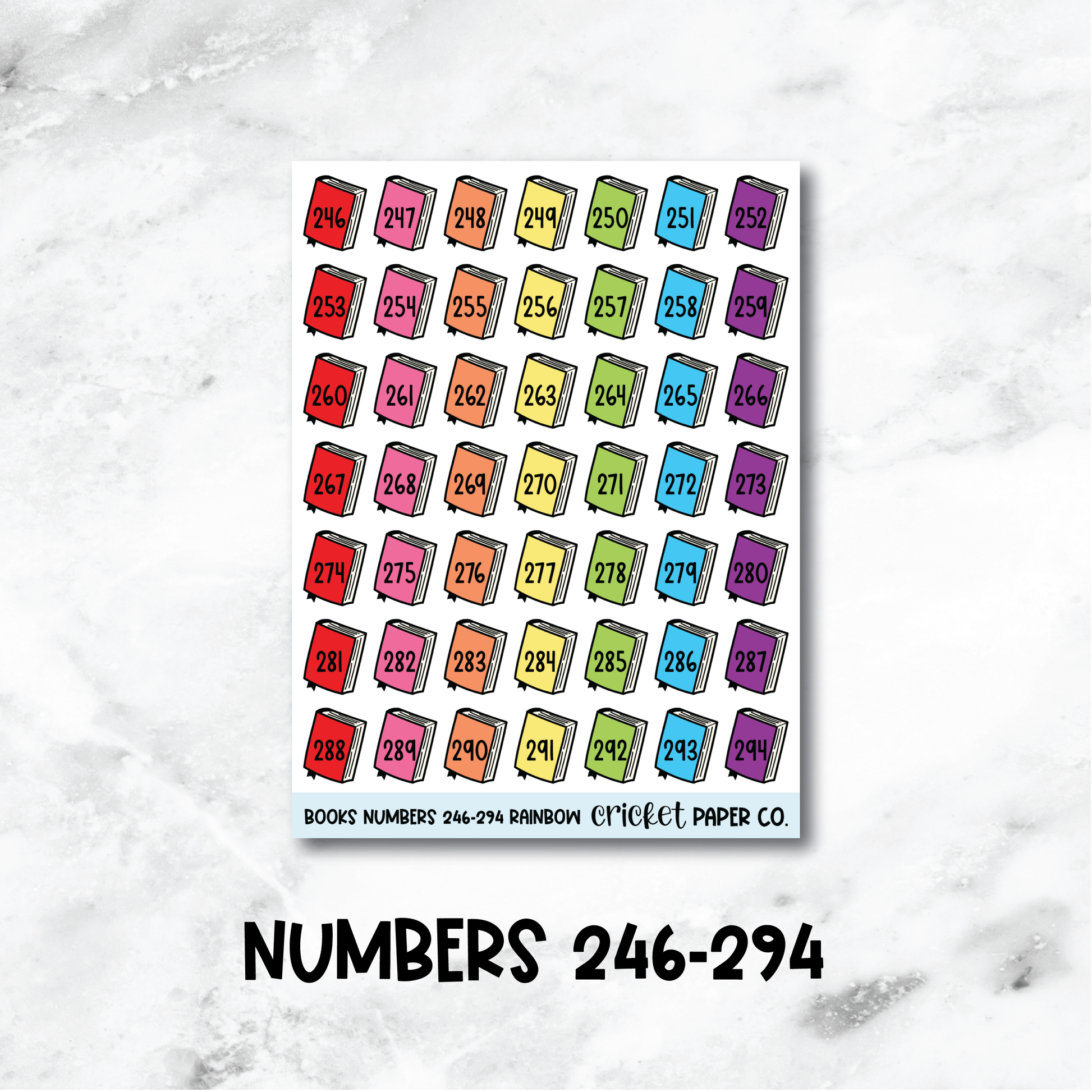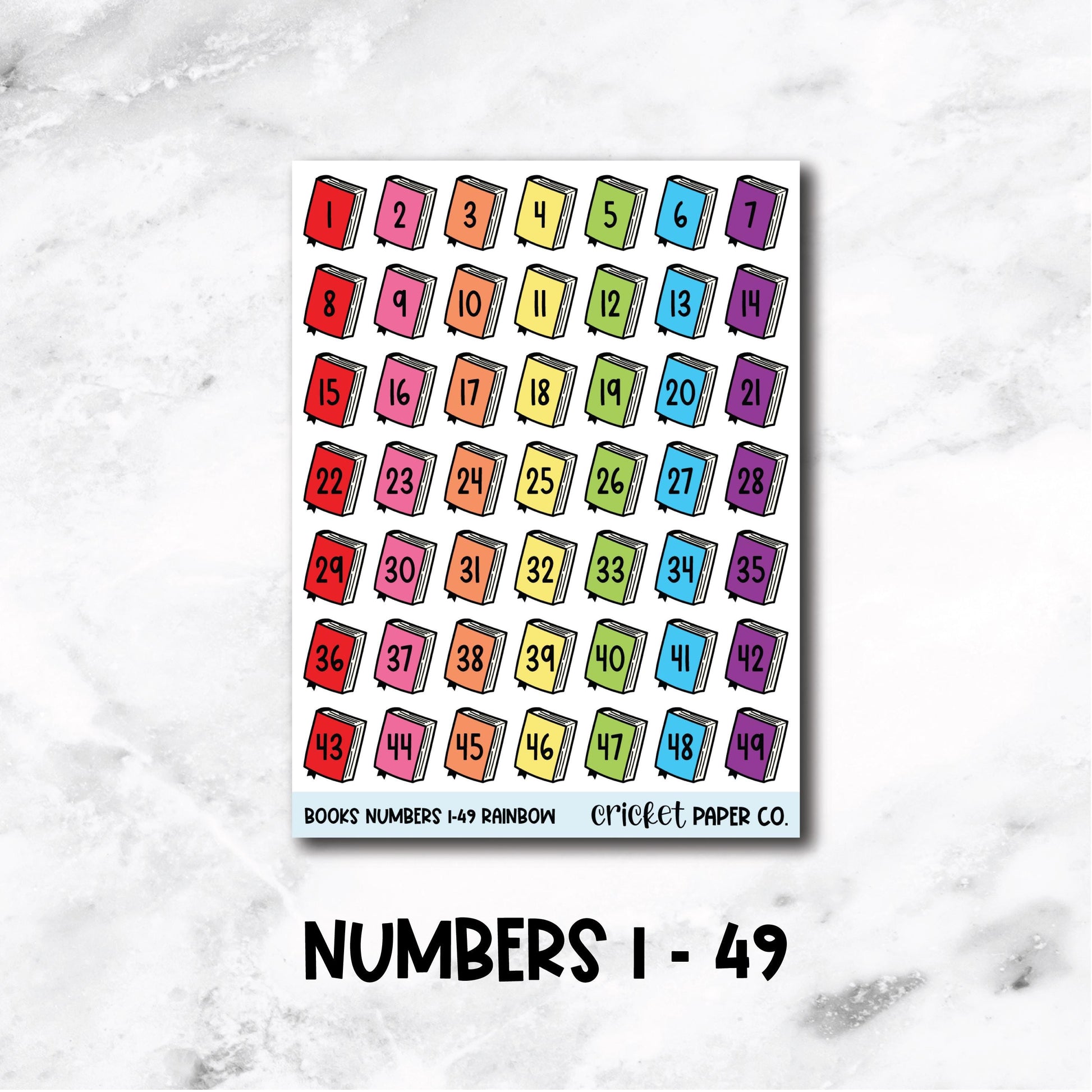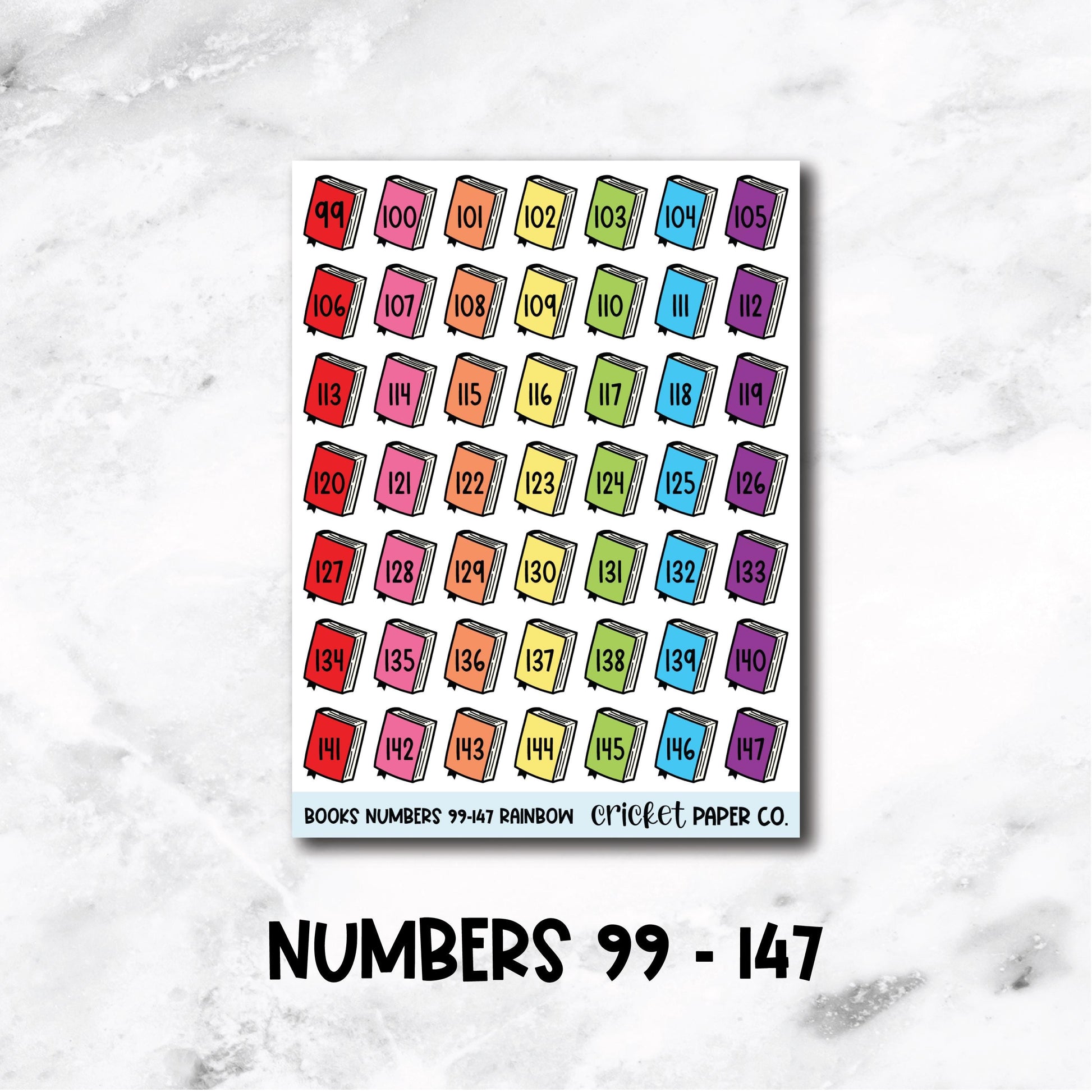 Book Numbers Reading Tracker Book Journal Stickers - Rainbow
