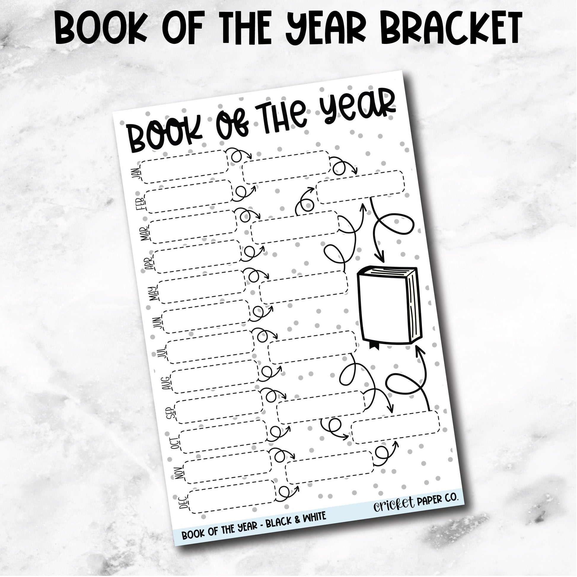 This book bracket helps you narrow down your favorite read of the year. Write down your favorites from each month and narrow it down until you're left with one standing.