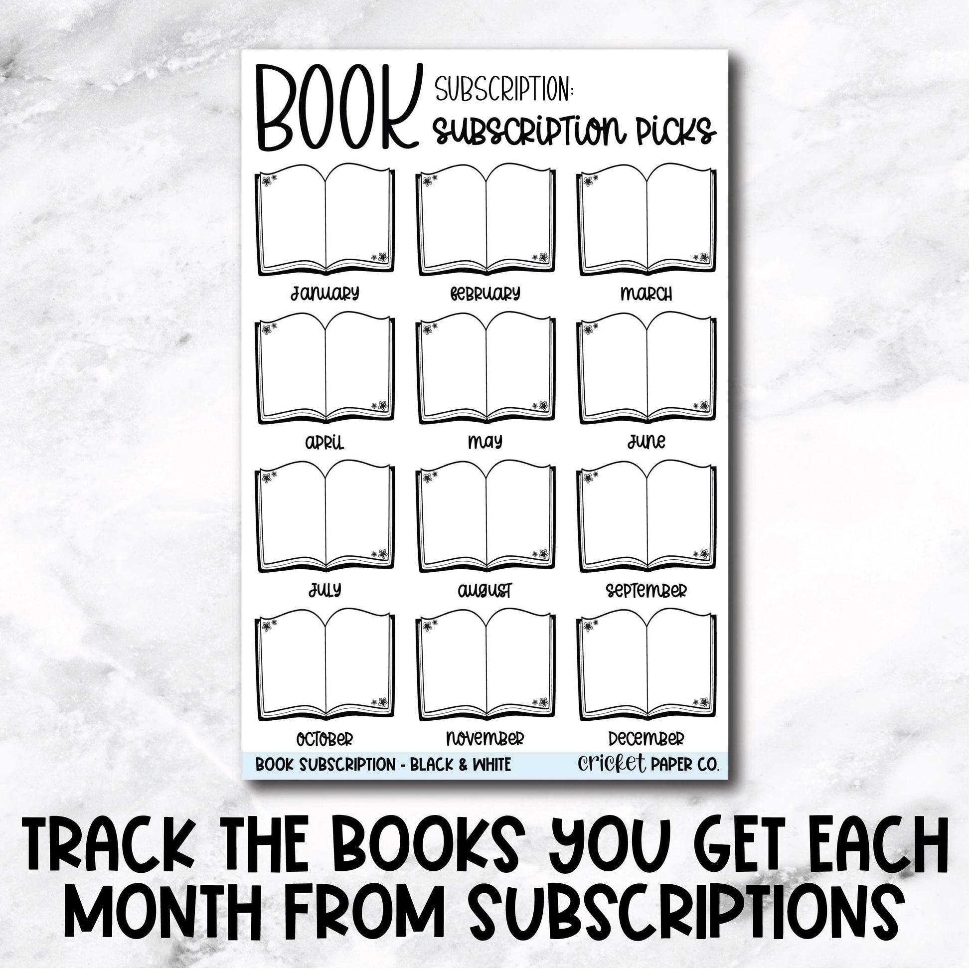 Book Subscription Tracker Book Journal Stickers - Black & White