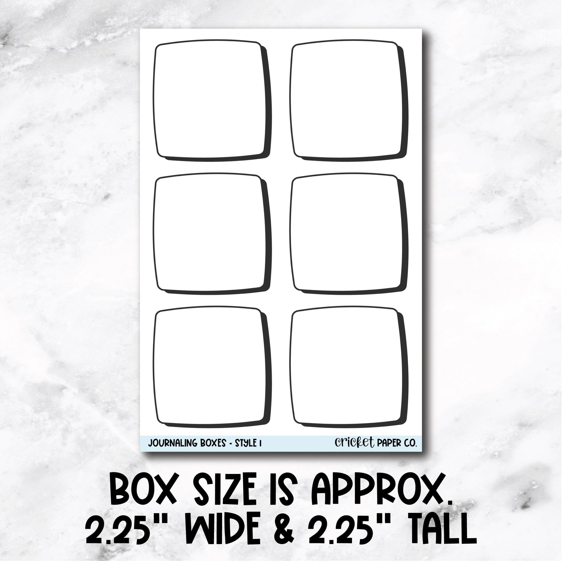 This listing comes with 6 doodle style boxes that are 2.25" wide and 2.25" tall.