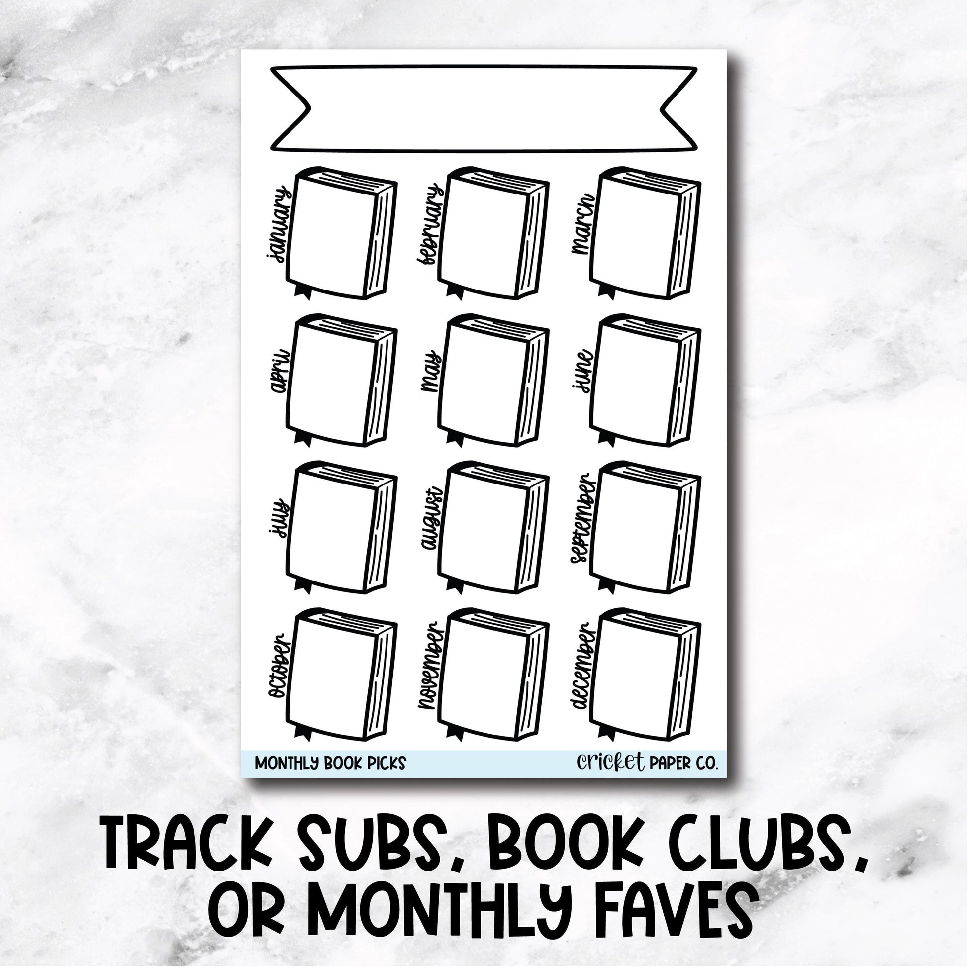 Monthly Picks Book Club or Subscription Tracker Book Journal Stickers