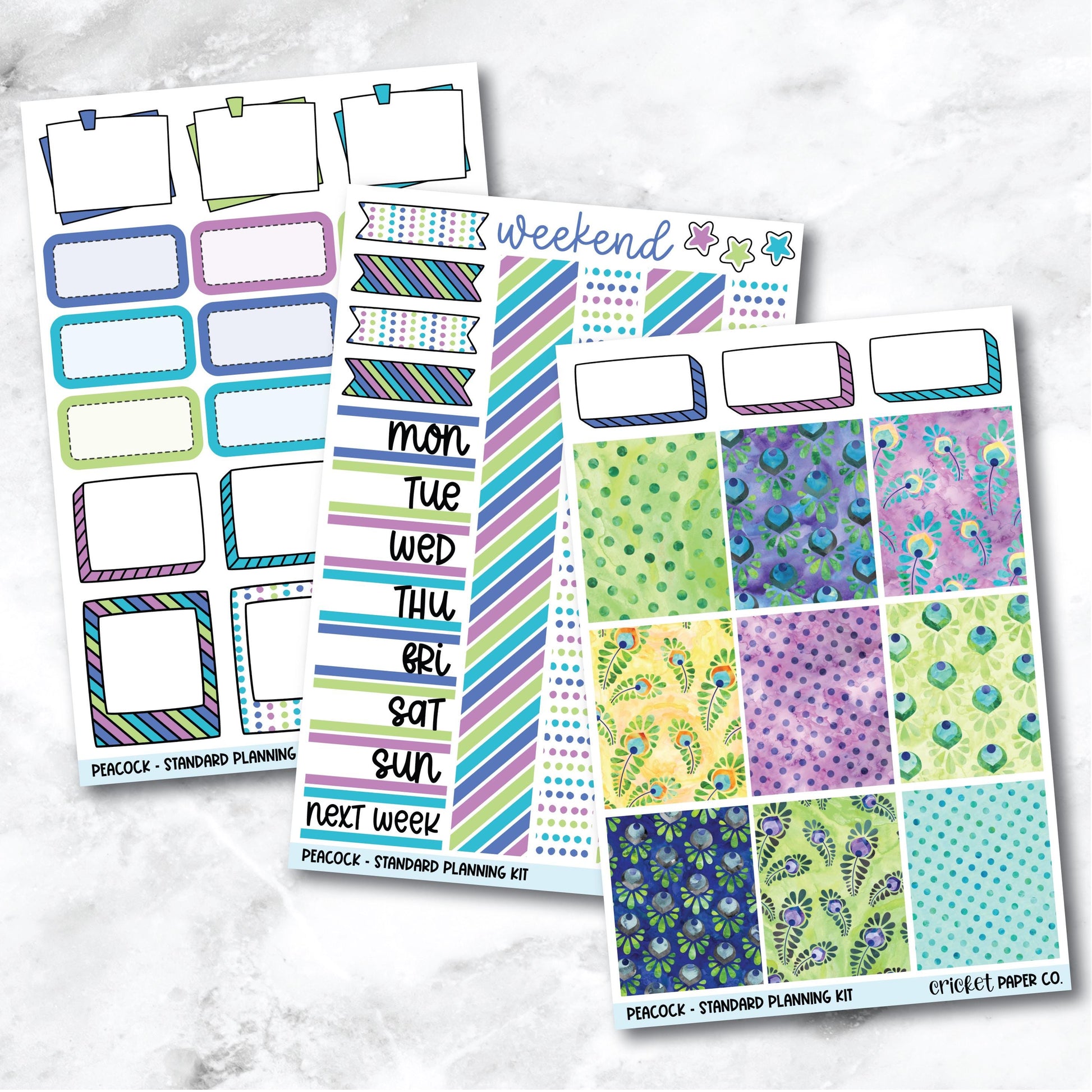 This listing is for a 3 sheet mini kit sized using standard vertical measurements intended for one week of planning. The full boxes are approximately 1.5" wide and 1.9" tall. The date covers and boxes are 1.5" wide. Washi can be hand trimmed to fit whatever spread you need. All stickers are printed on white repositionable matte VINYL. These stickers are kiss cut and ready to use. Just peel and place on your planner where desired. Permanent marker is required to write on the vinyl.