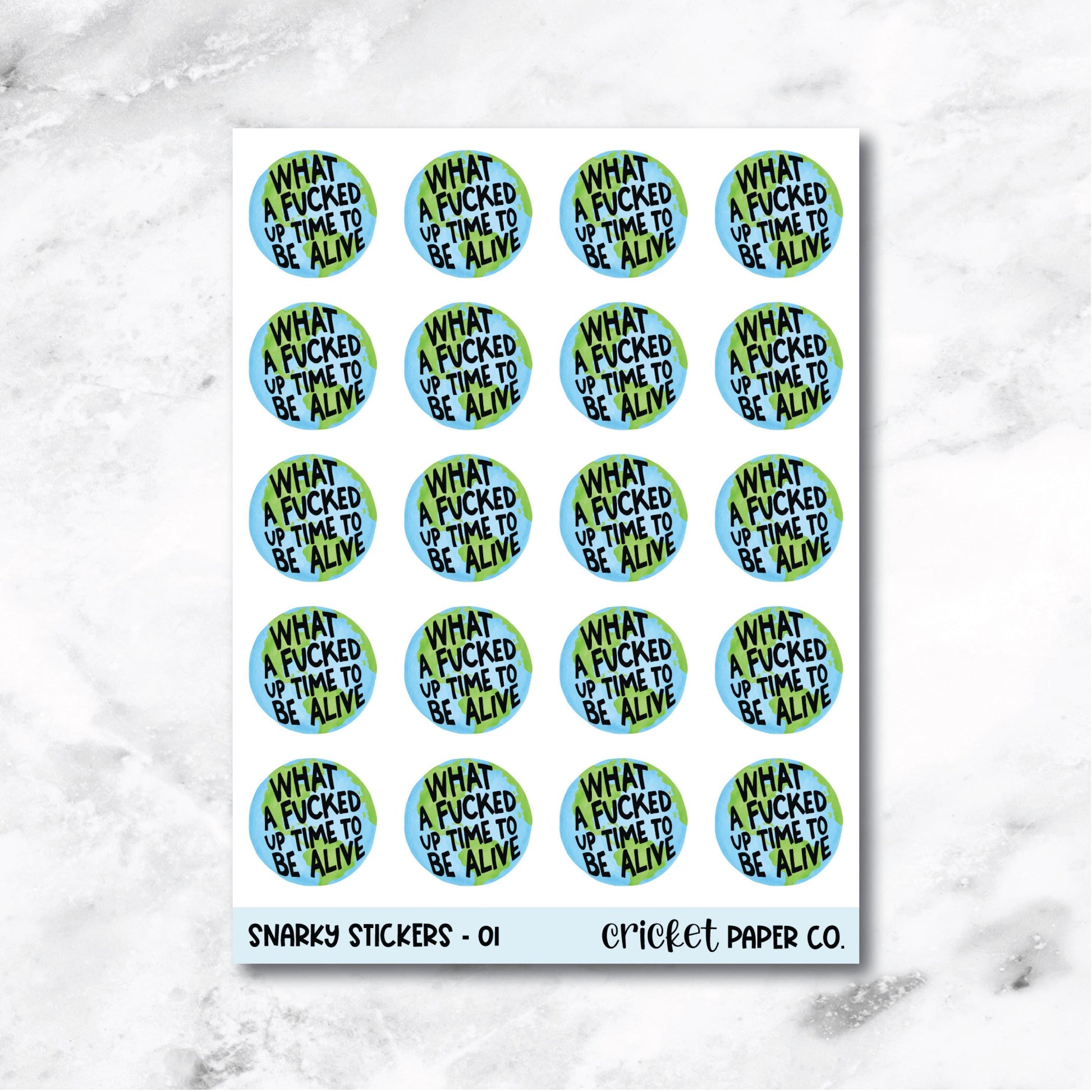 This listing comes with 20 snarky stickers that are perfect for journals and planners. They are approximately 0.85" wide. All stickers are printed on white repositionable matte VINYL. These stickers are kiss cut and ready to use. Just peel and place where desired!