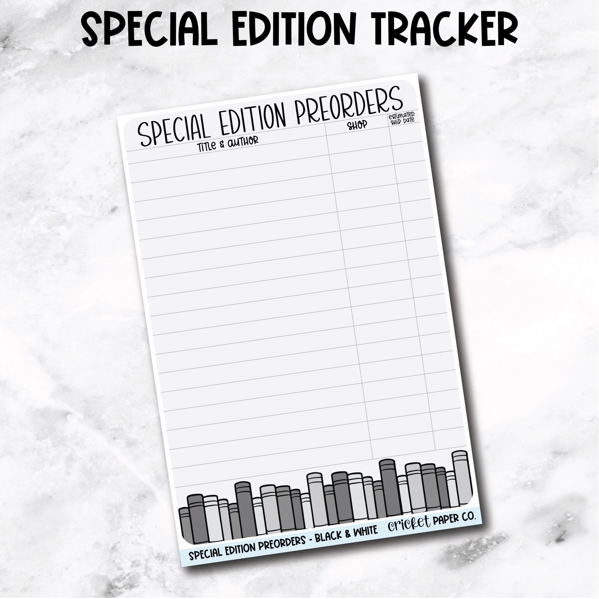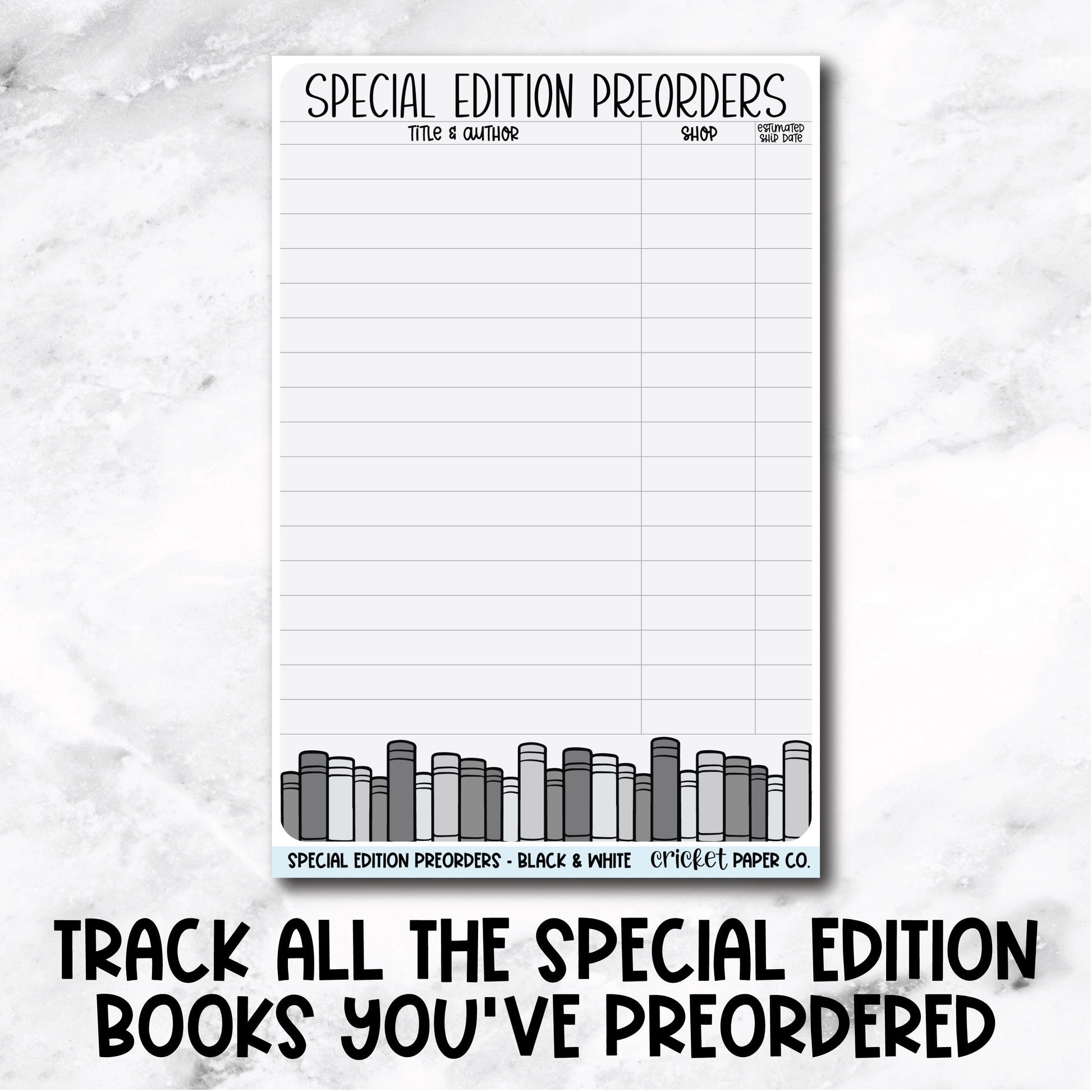 Special Edition Preorder Tracker Book Journal Jumbo Sticker - Black & White